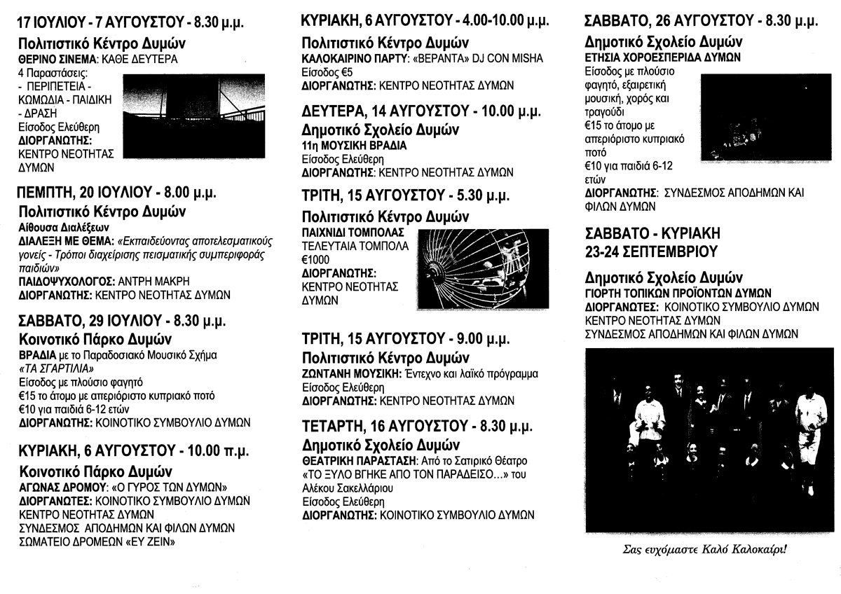 Καλοκαιρινές Εκδηλώσεις Δυμών